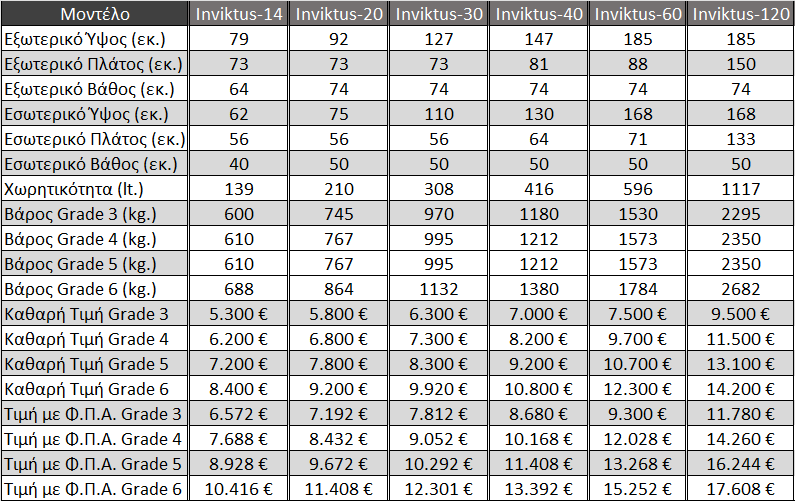 Επιλογή από τέσσερα διαφορετικά μεγέθη με χωρητικότητα από 140 έως 1120 λίτρα.